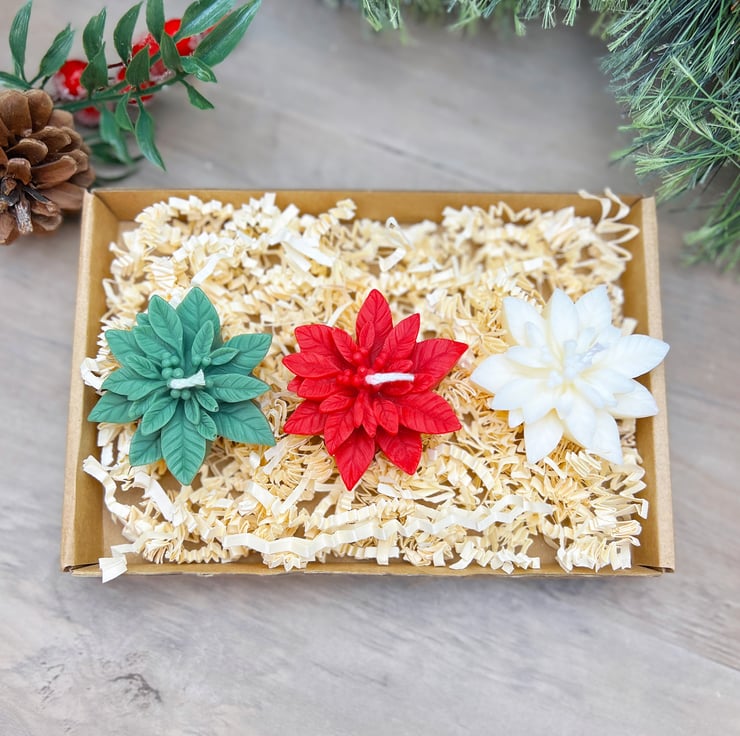 Illuminate your Christmas decorations with our Christmas Poinsettia Tealight Candles, a thoughtful gift set inspired by the beauty of the classic green and red Christmas flowers. Enrich your festive ambiance with these exquisite tealights that capture the spirit of the season. Perfect for gifting or enhancing your own holiday decor, these candles bring a touch of Christmas elegance to any setting.