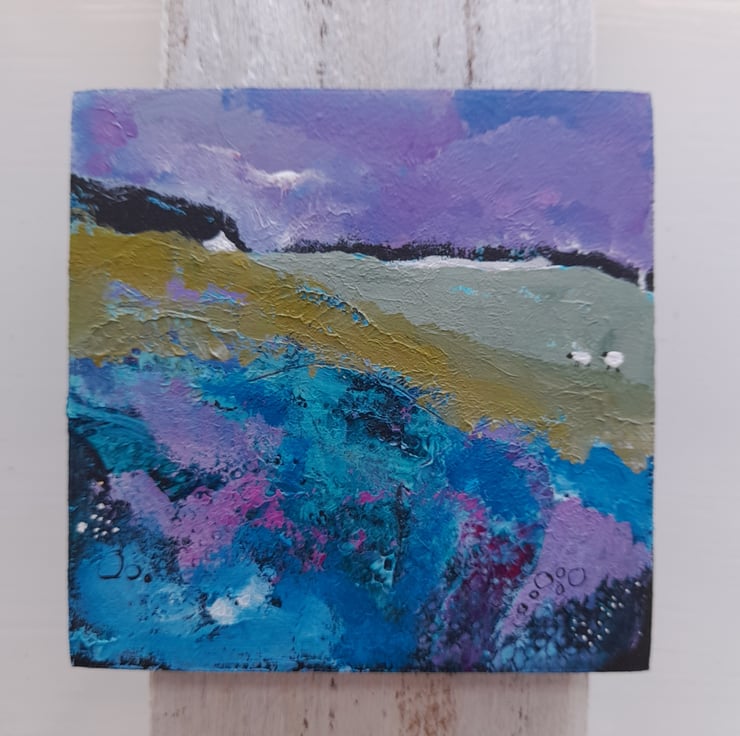 This listing is for one 10 x 10 cm painting as shown. It is varnished signed on the back and has a hook ready to hang. Great to brighten up a small corner or to give as a gift.