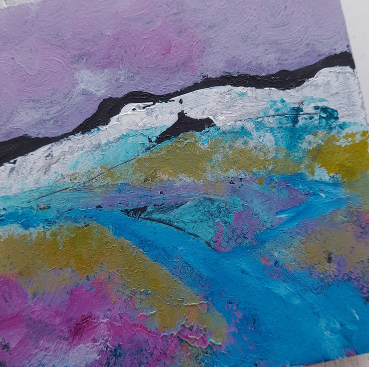 This listing is for one 10 x 10 cm painting as shown. It is varnished signed on the back and has a hook ready to hang. Great to brighten up a small corner or to give as a gift.