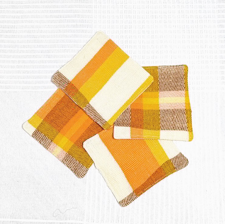These coasters are made from original woven fabric designed by myself, using a combination of natural wool and cotton yarns. This pack contains two different designs in bubble-gum pink which will make the perfect pop of colour for any household!