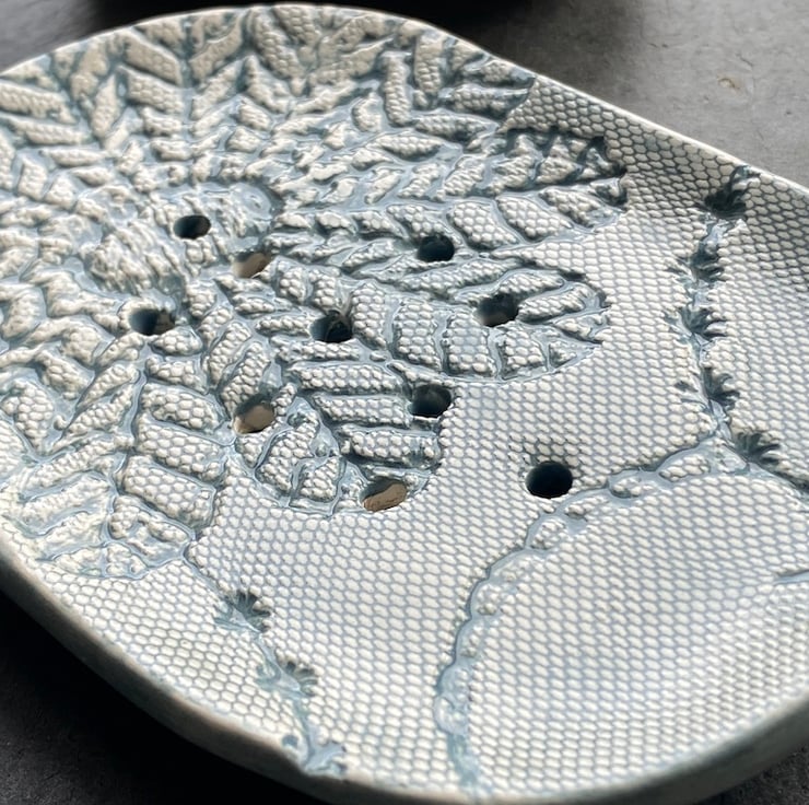So unique handmade ceramic soap dish hand formed from earthenware clay.
