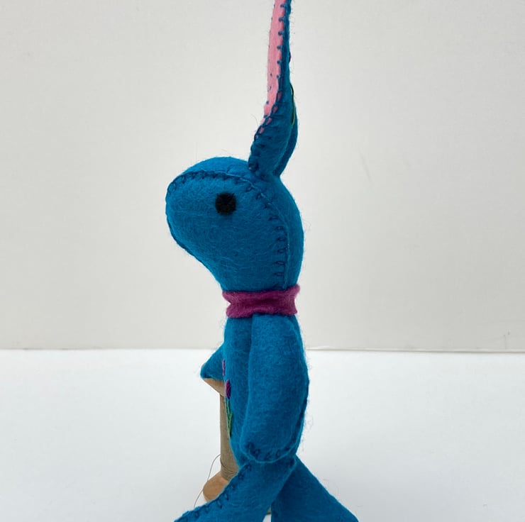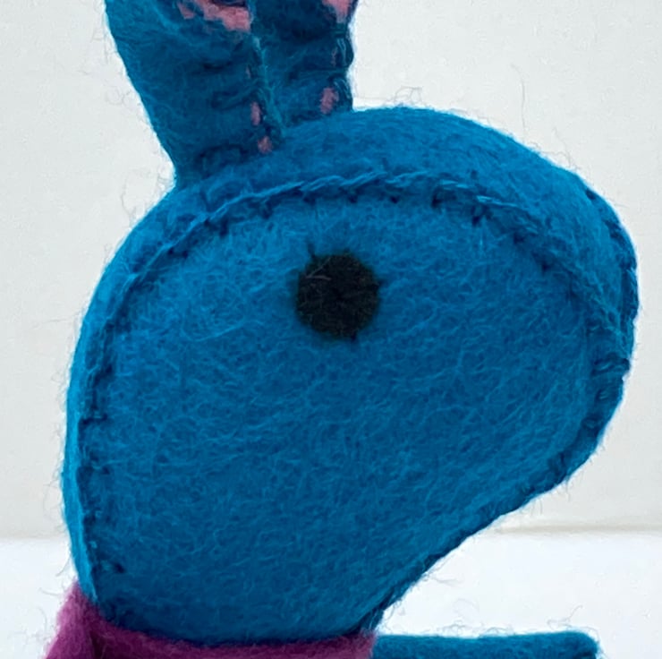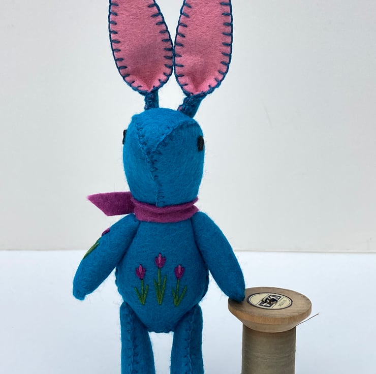 I have used teal wool felt to make Bunny’s body which I have lovingly filled with regulation Hi-Loft polyester toy stuffing.