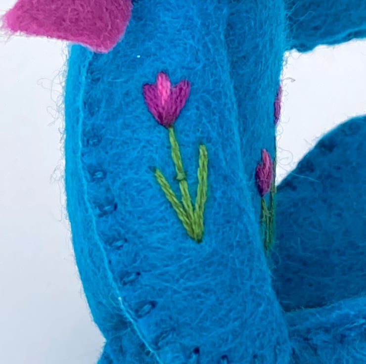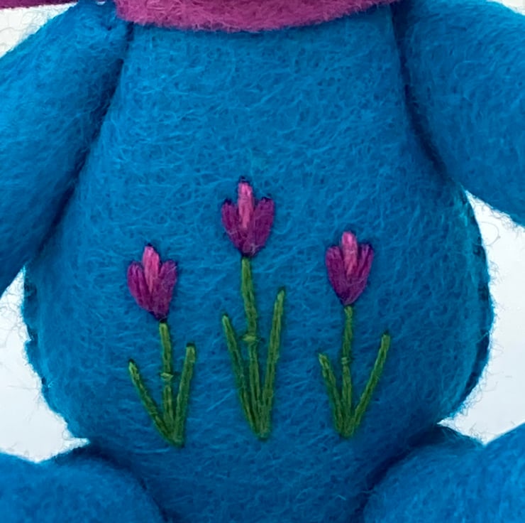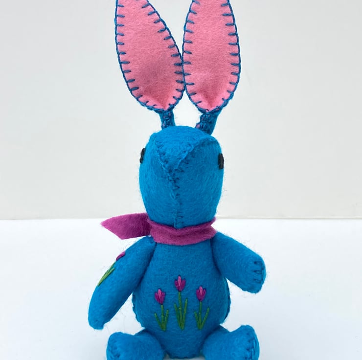 Bunny is completely hand embroidered by myself using various stitches, making them unique.