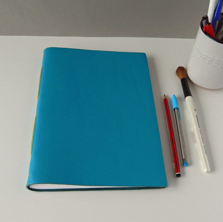 This sketchbook is made with the most beautiful piece of turquoise leather, with a pebble grain finish.