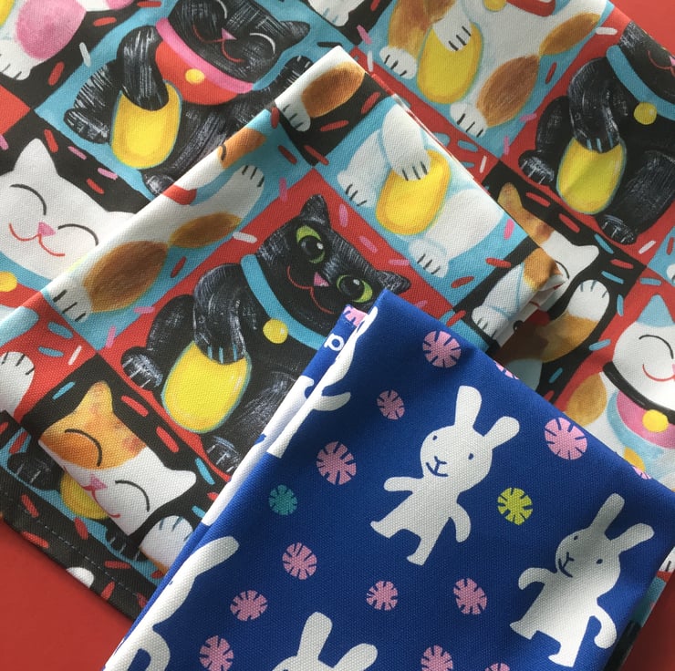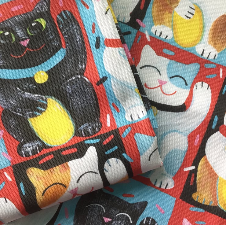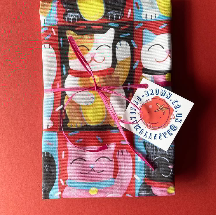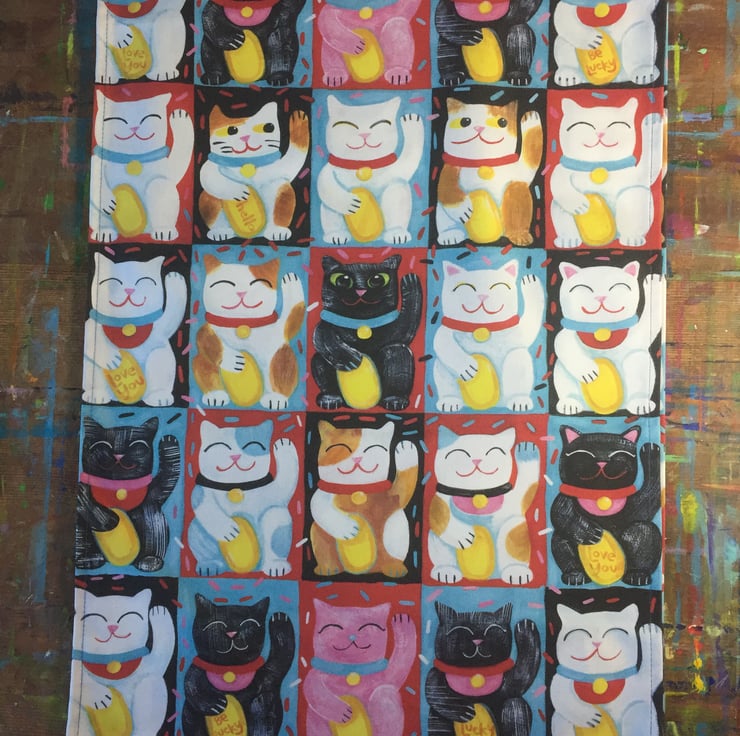 Lucky Cats Tea towel by Jo Brown, happytomato