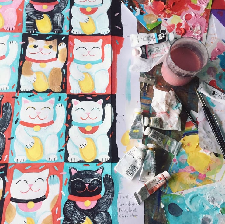My own version of Maneki Neko - Lucky Cats from my original painted design.