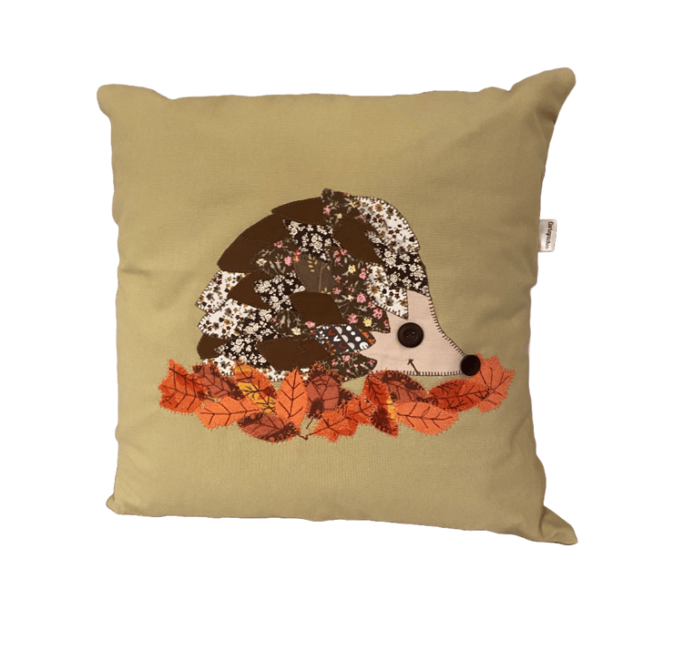 Hedgehogs are known for their cuteness so I combined a hedgehog with leaves in autumnal colours and designed this cushion cover.