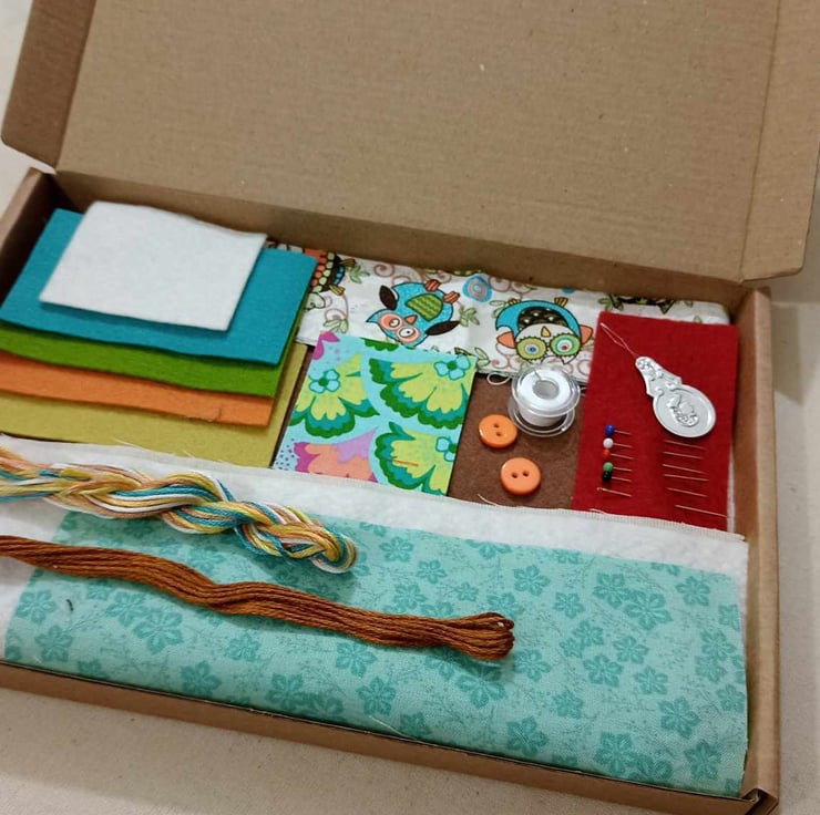 This diy sewing kit includes high quality natural materials such as quilting cotton, wool felt and bamboo wadding, and uses a number of hand-sewing techniques that are fun to learn - including applique, embroidery and patchwork. More information is given in the photos.
