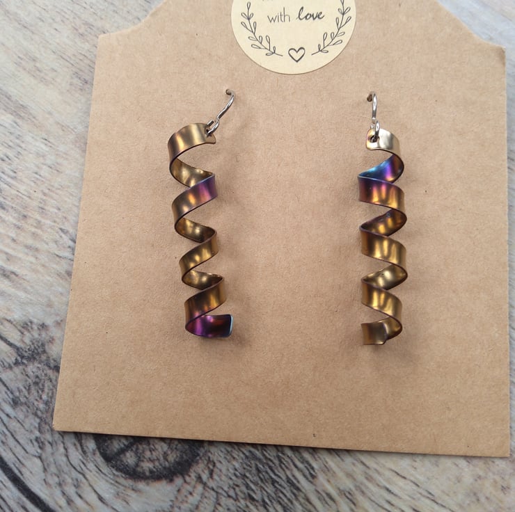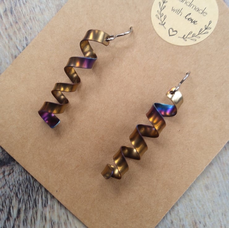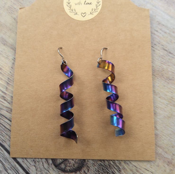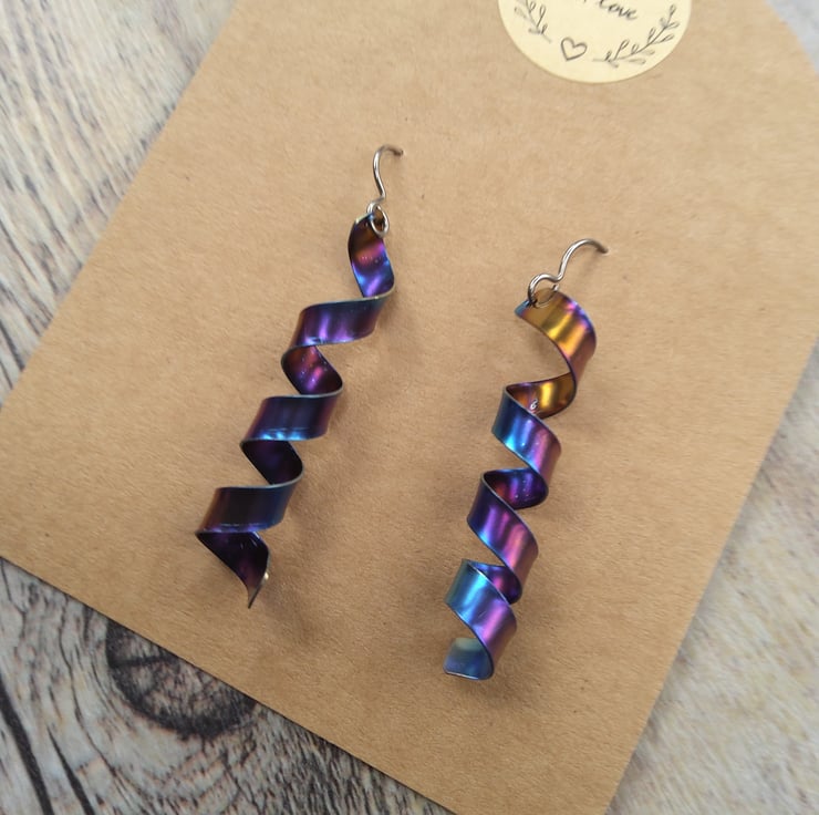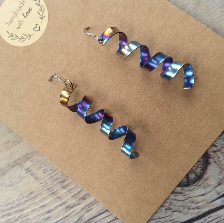 Rainbow Anodised Titanium Earrings Lightly Textured Handmade