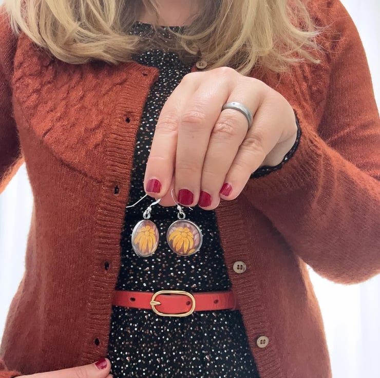 Orange Autumnal Dangle Earrings, Autumn Art Print Jewellery, Floral, Flowers
