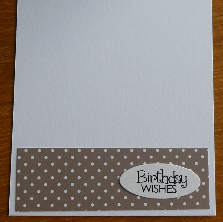 Inside the card a strip of matching polka dot card has been added across the bottom with an oval message with the words 'Birthday Wishes'.