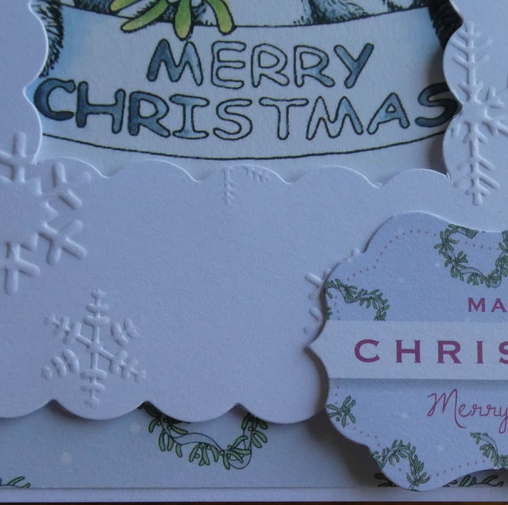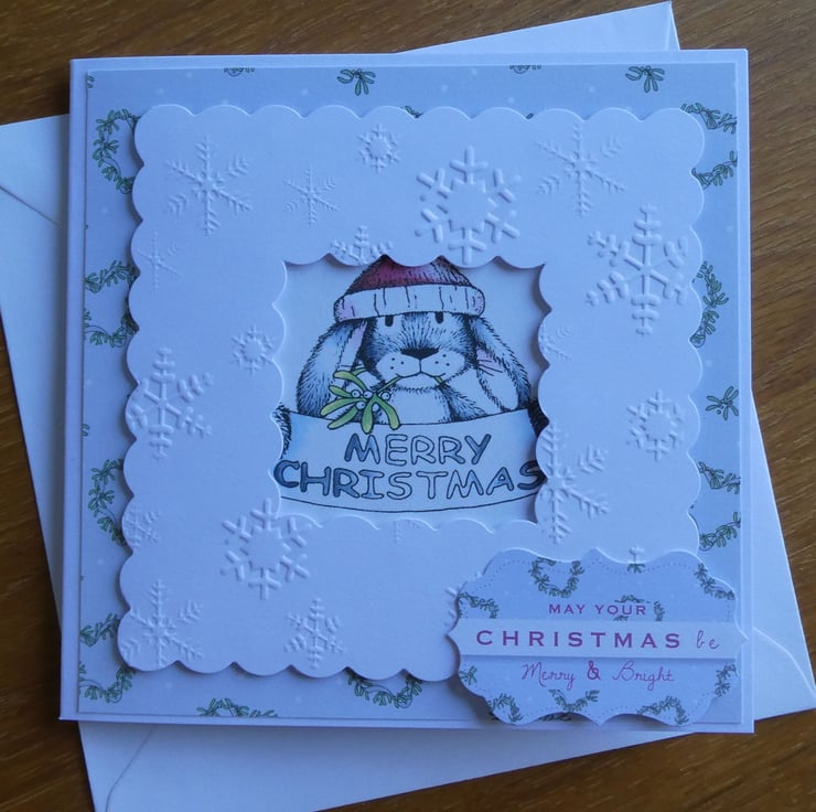 The card has been finished with a message with the words 'May Your Christmas be Merry & Bright ' in the bottom right hand corner.