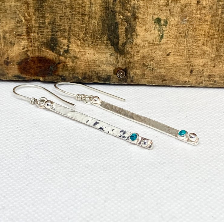 The earrings hang from handmade sterling silver earwires