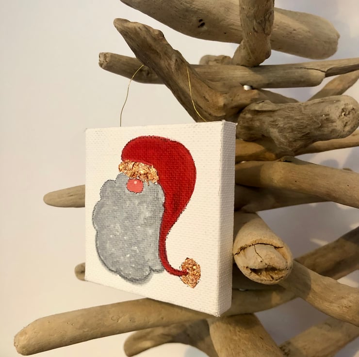 A small work of art for the Christmas tree. I love creating these small Father Christmas decorations and making each one slightly different from the others.