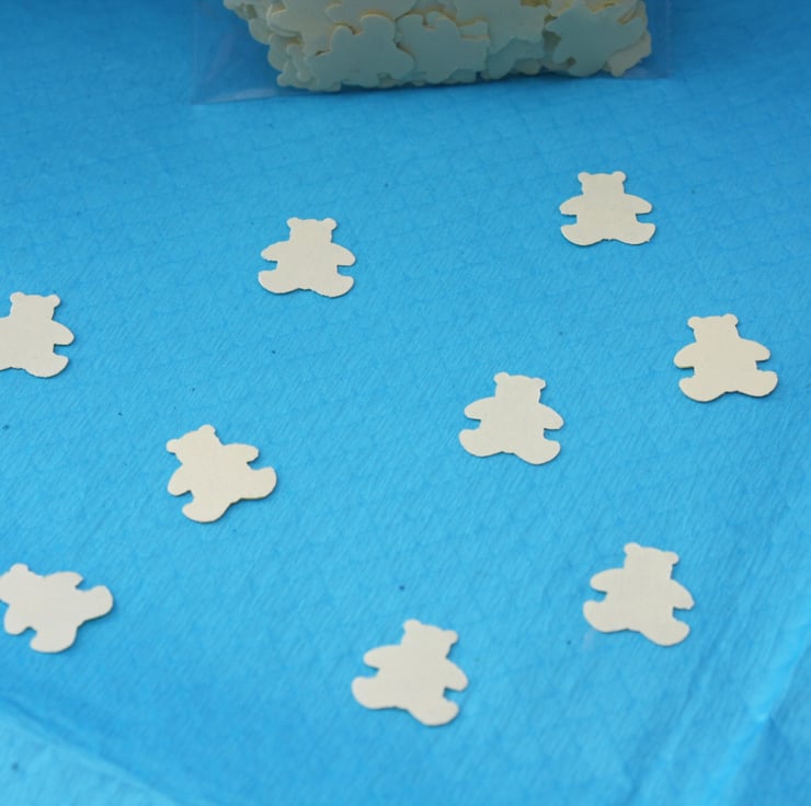 Also included in this set is approximately 100 pastel yellow teddy bear confetti, measuring 1.5cm in height. The confetti can be used to place in gift bags or sprinkled in cards.