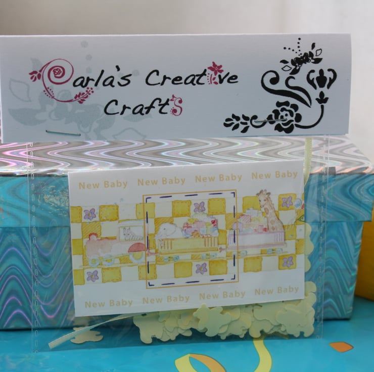 Beautiful hand crafted new baby gift tag & confetti, made just for you. Each set includes a gift tag with my very cute watercolour design of a train with animals. The tag measures approximately 5.5cm in height and 9cm in width. The tag comes with a pastel yellow or white ribbon to attach to your gift/gift bag.