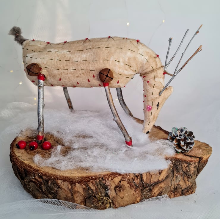 This quirky one of a kind folk stag is created to have an aged primitive feel.