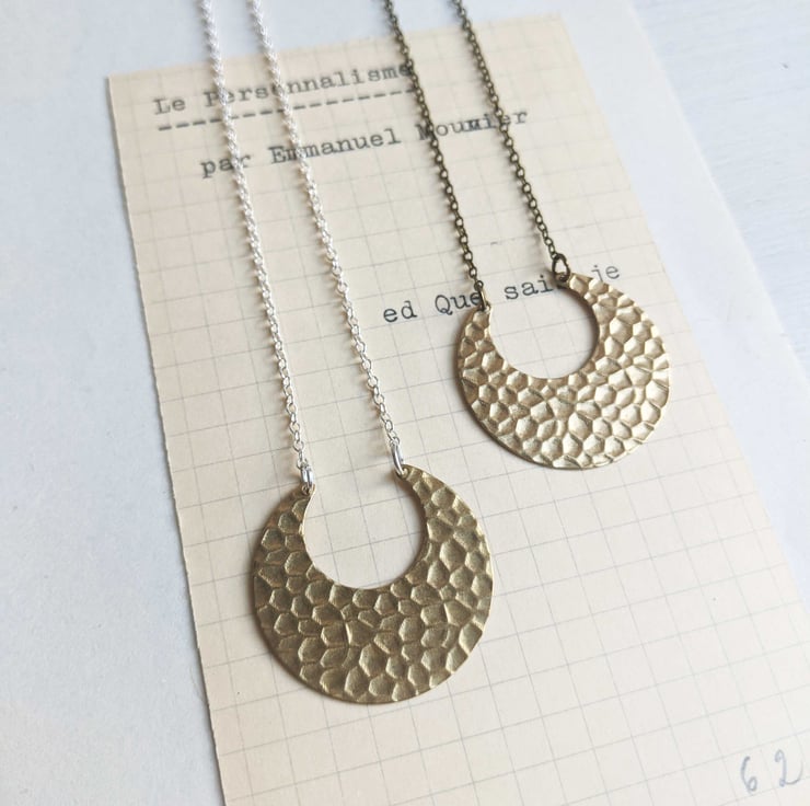 Crescent Moon necklace - on silver - textured horsehoe on fine chain - modern