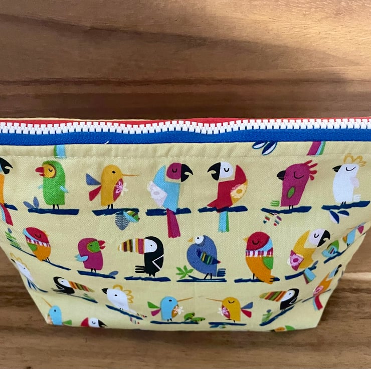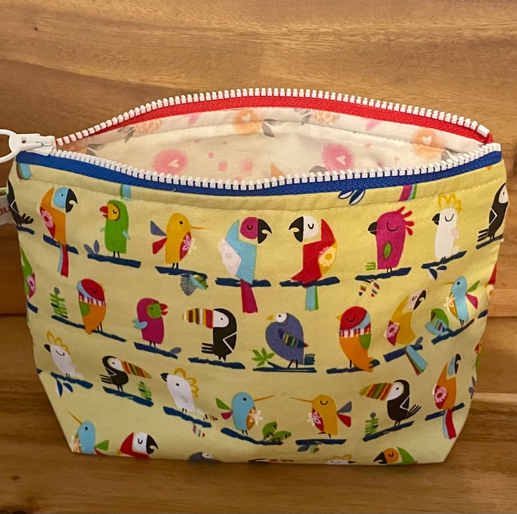 The small makeup bag, with a cute multi-coloured YKK zipper, is 22cm wide and 16cm including the base including the small base.
