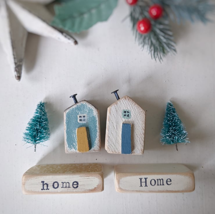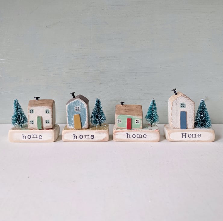 Choose your favourite word on your painted wooden base, and add your teeny house and tree.