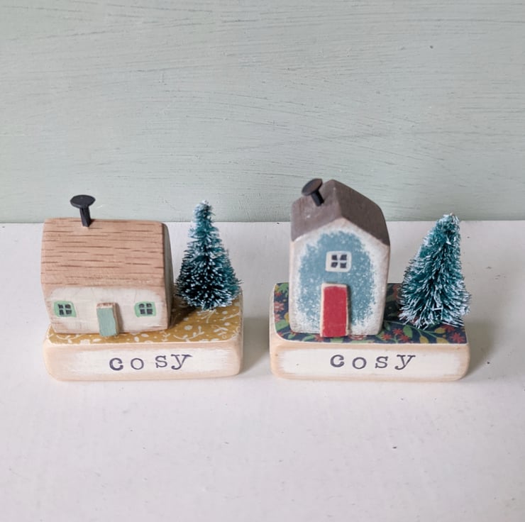 Choose your favourite house to pop on your stamped wooden base, and add your teeny tree.