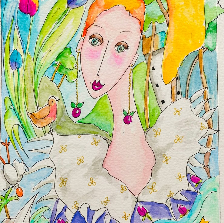An original watercolour painting measuring 9x6inches with a white border of approximately 1 inch. Painted on 300gsm acid free watercolour paper with high quality Schmincke watercolour paints and finished with some gold pen work. This is a vibrantly coloured and detailed painting reflecting the world around us, the abundance of the natural world and how it connects.
