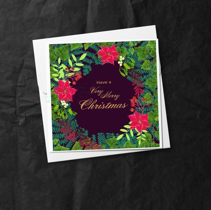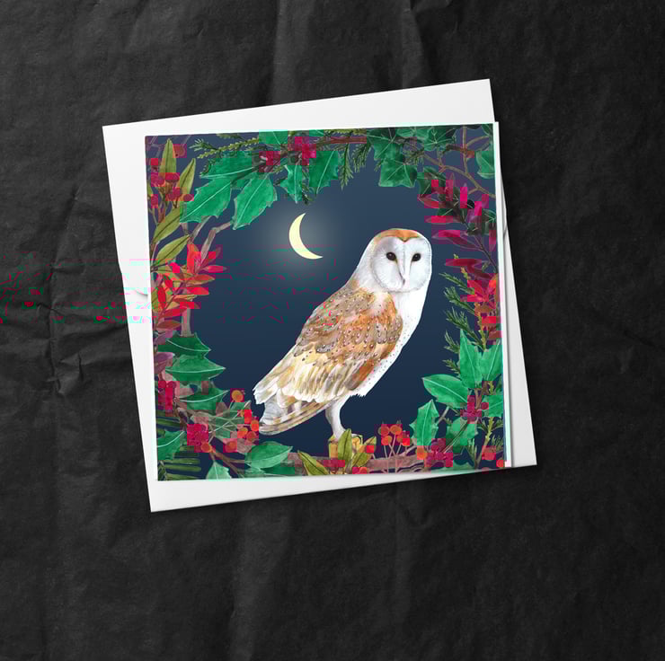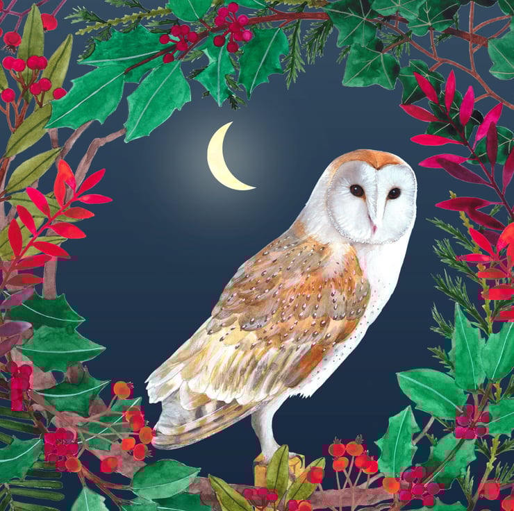 This is a set of four handmade Christmas greeting cards, created from my original artwork. This set includes 4 different designs, two designs featuring animals, a barn owl and a squirrel, together with two wreath and typography designs with seasonal sentiments.