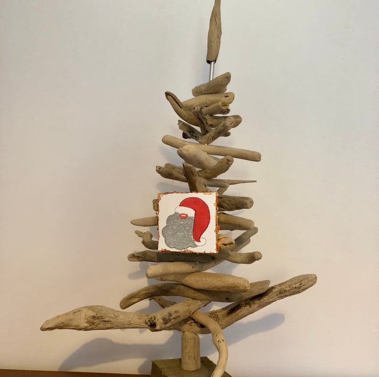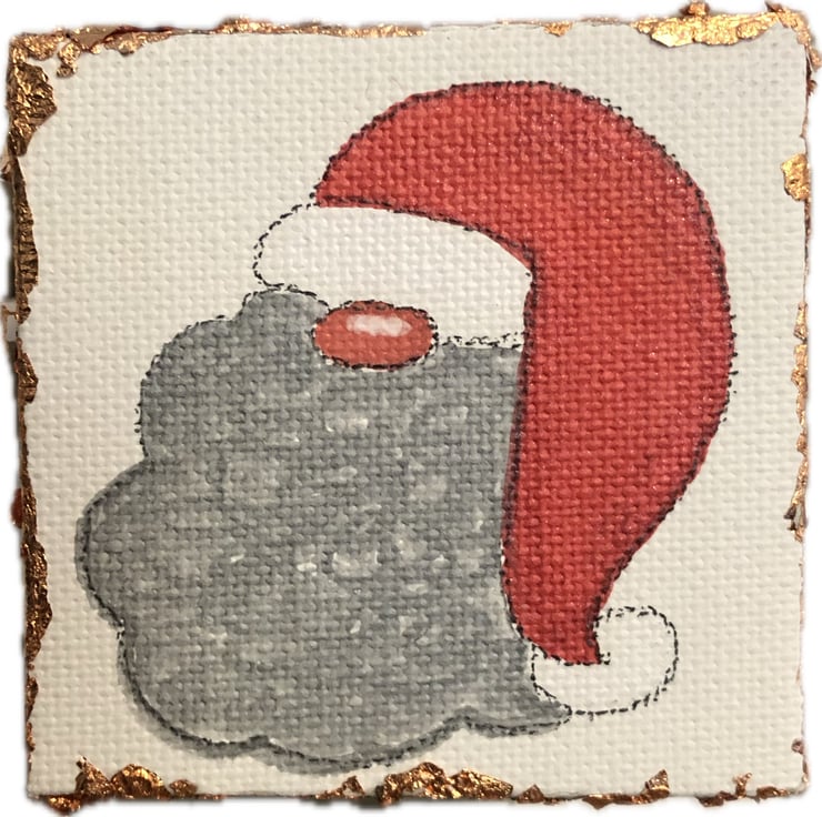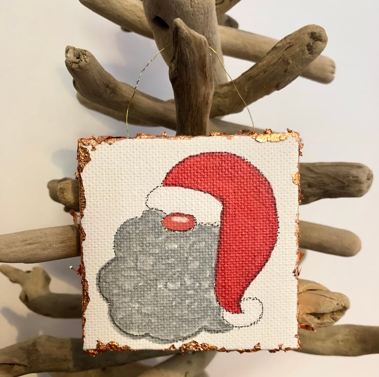 This one-off decoration of Father Christmas has been hand drawn by me and finished off with gold coloured leaf on the edges to create its own frame. The decoration measures 7x7cm and is treated with a fixative spray to prevent smudging and fading.