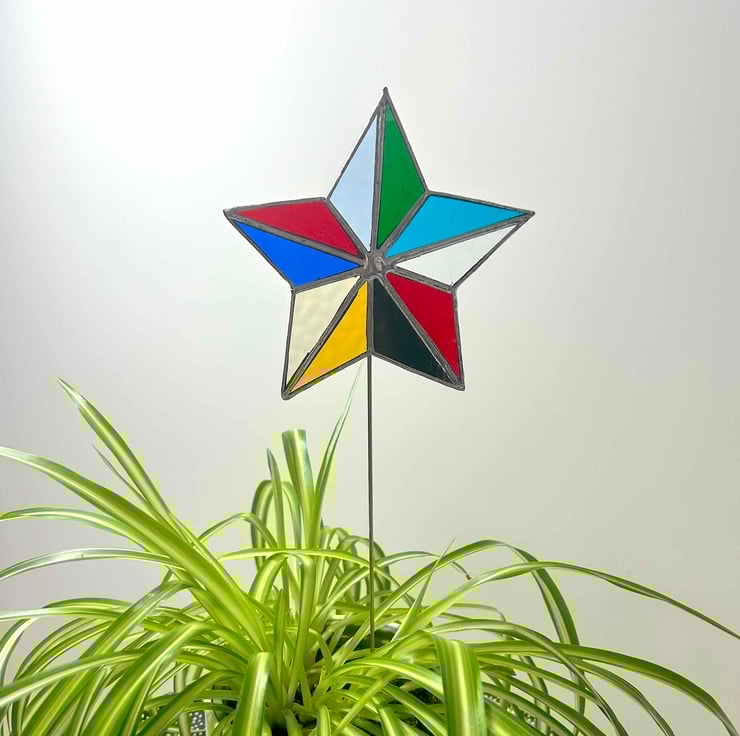 Add a touch of magic to your Christmas tree decorations with this stunning Colourful Star in Tiffany stained glass, available to hang as a decoration or use as a planter - see pics!