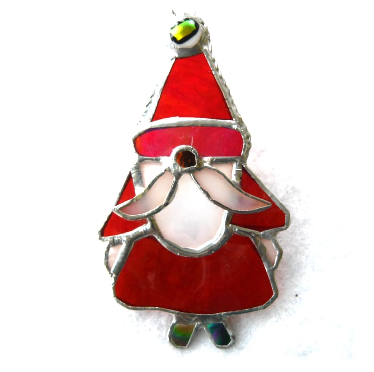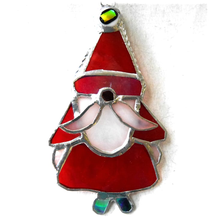 A stained glass suncatcher, a Santa Christmas decoration, made using the Tiffany copper foil technique. Father Christmas to hang on your tree and give it an extra festive look.