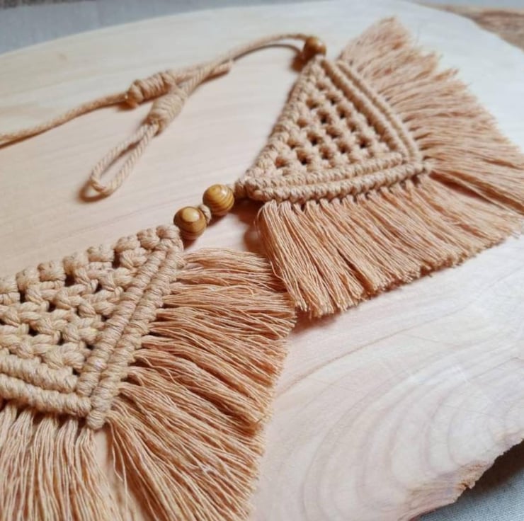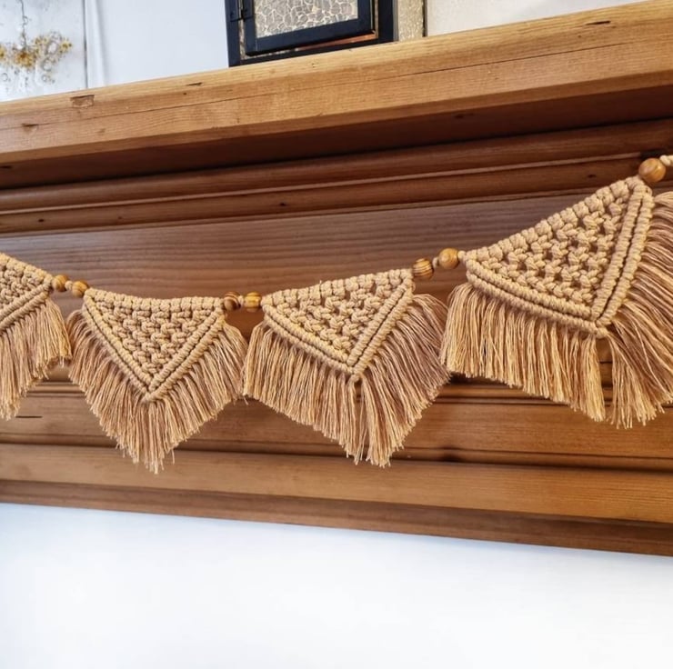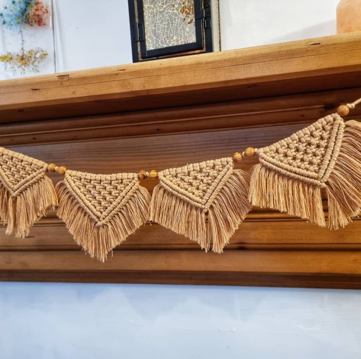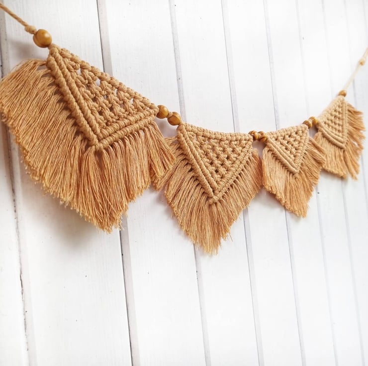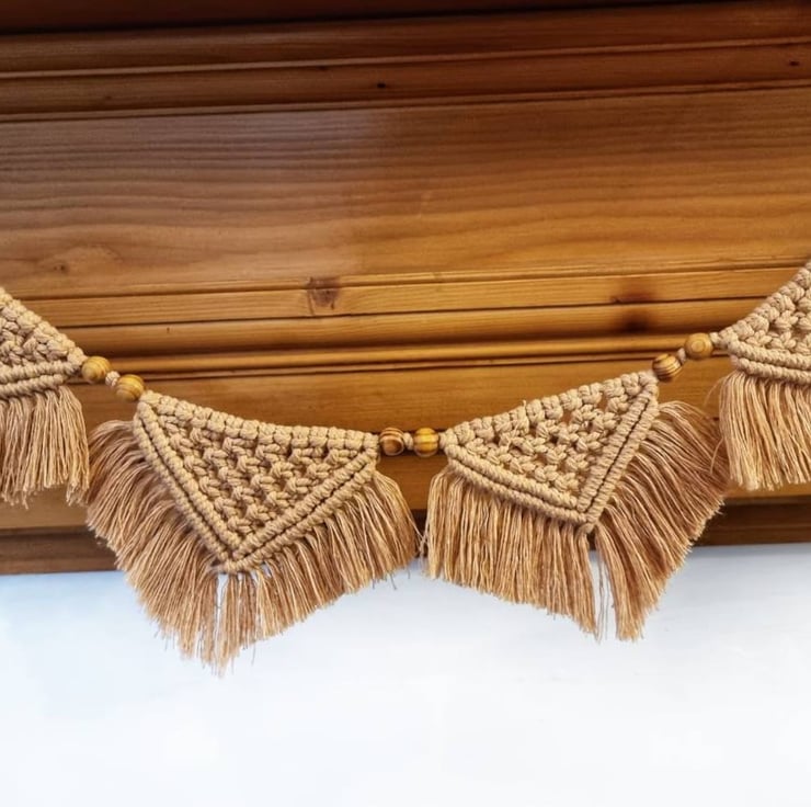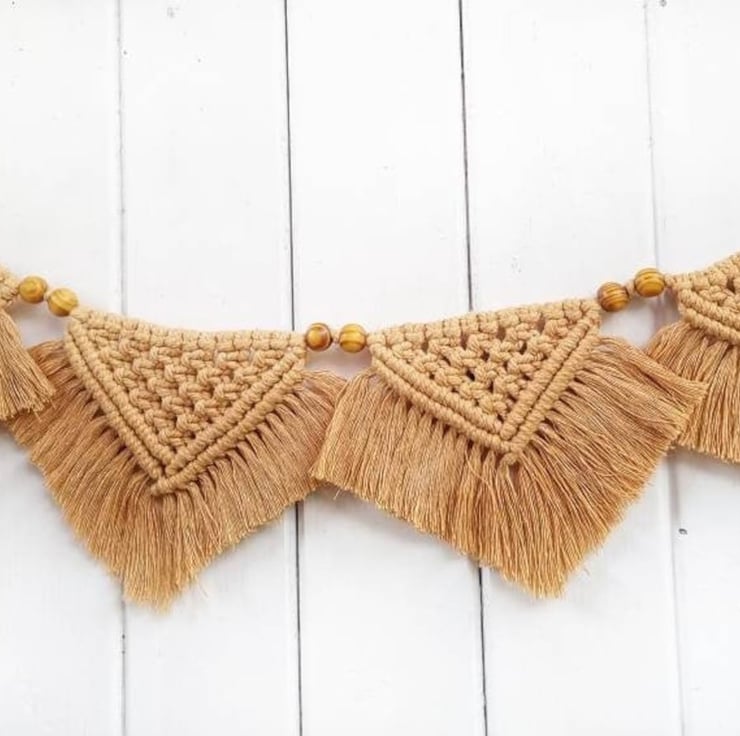 Rustic macrame bunting made with 100% cotton and wooden beads.