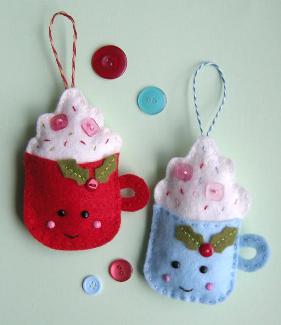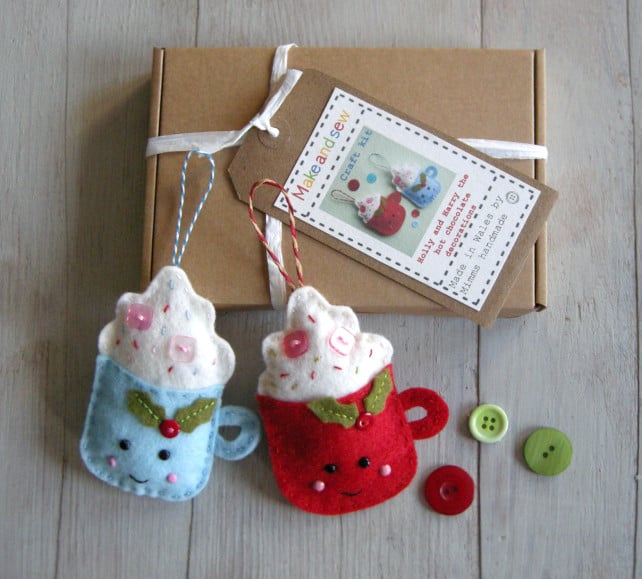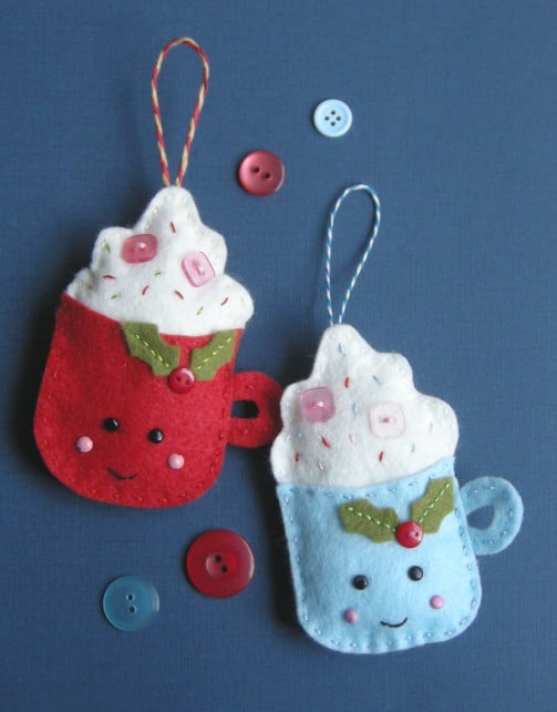 Make and sew Holly and Harry the hot chocolate decorations to hang on your christmas tree.