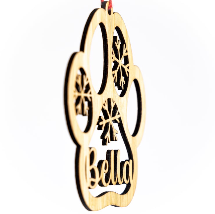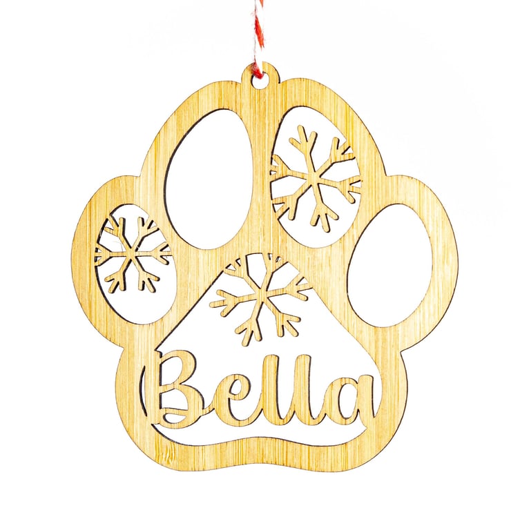 Create your own special Christmas decorations for your gorgeous doggy friends this year! Add your dog's name into this paw print ornament that is decorated with snowflakes. We will incorporate the name into the design and create your bespoke laser cut decoration! Hang in your Christmas tree or over their favourite spot to sleep.