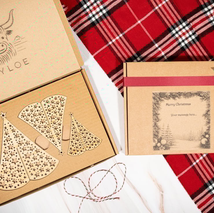 All of our handcrafted sustainable Christmas decorations come with eco-friendly gift packaging included (as you can see in the photos). We will not include any invoices inside the box. You can send as a gift direct to the recipient here on Folksy. Add a Note to Seller when you checkout with your gift message. We will print your message onto the gift box.