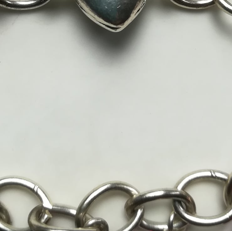 Silver plated chain is 7.5" (18.5cm) length.
