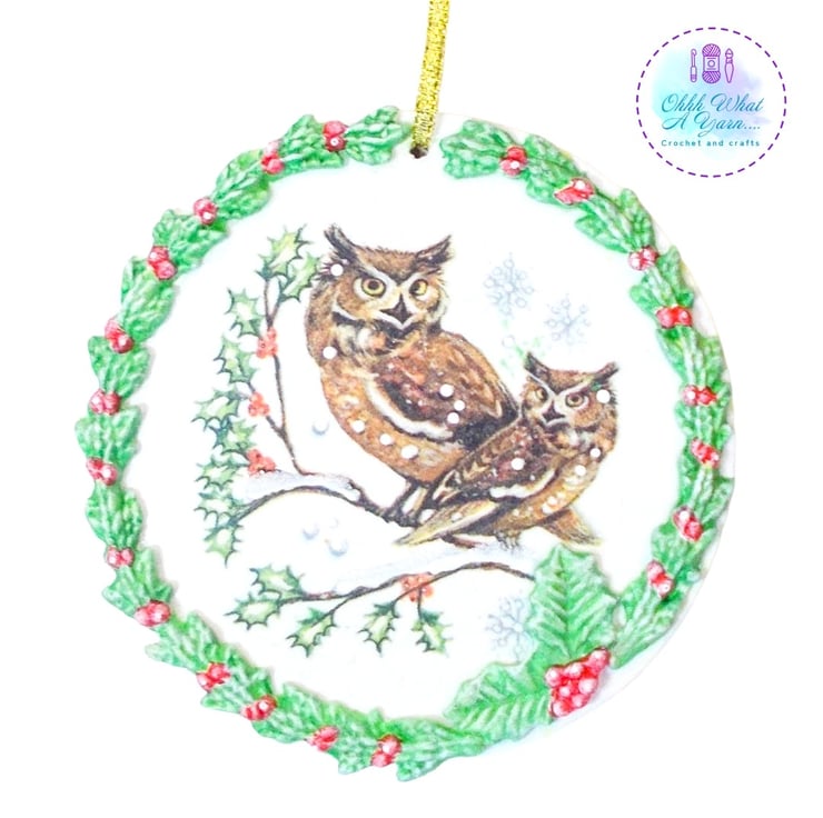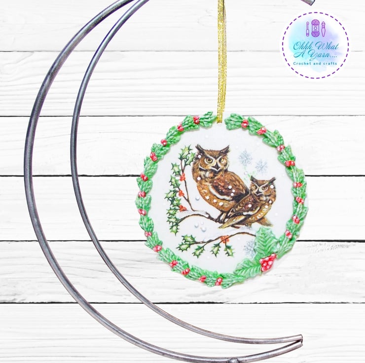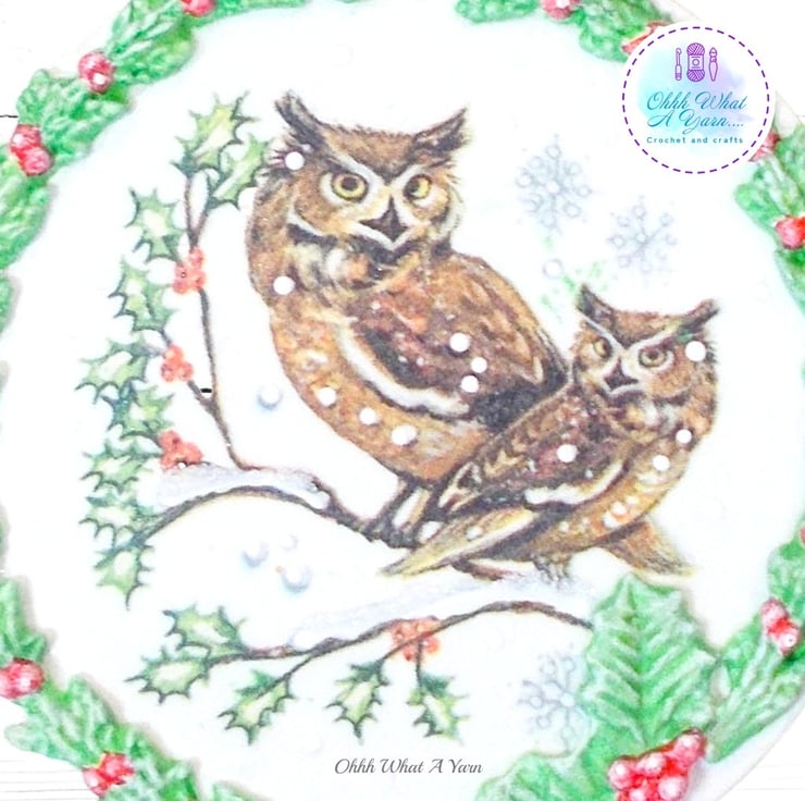 This pretty owls wreath decoration has been created on a 10 cm MDF circle.