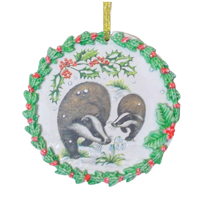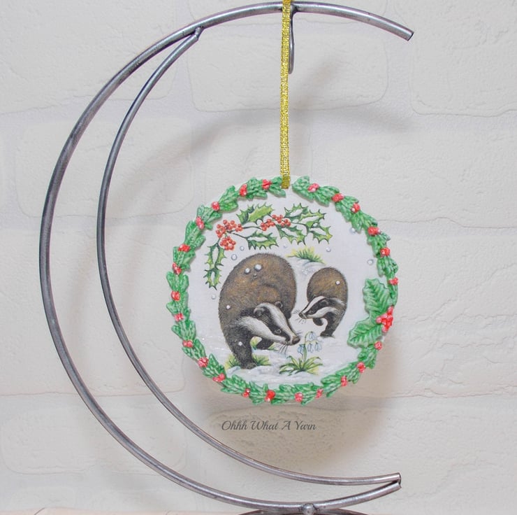 This pretty badger wreath decoration has been created on a 10 cm MDF circle.