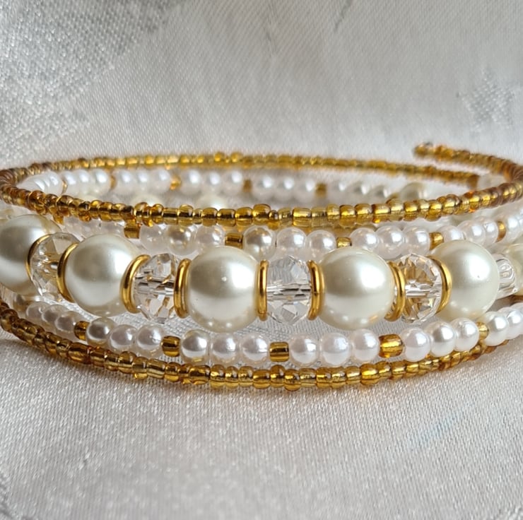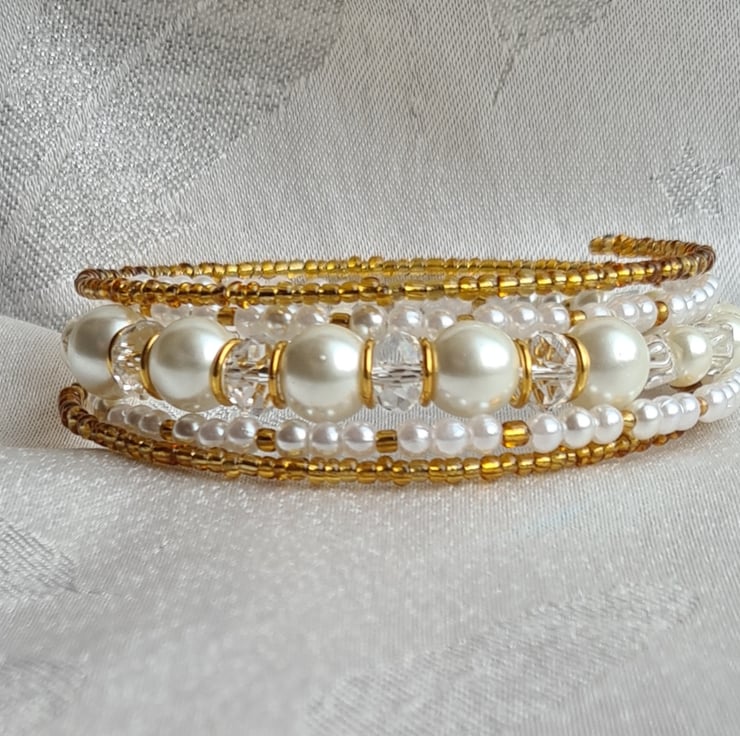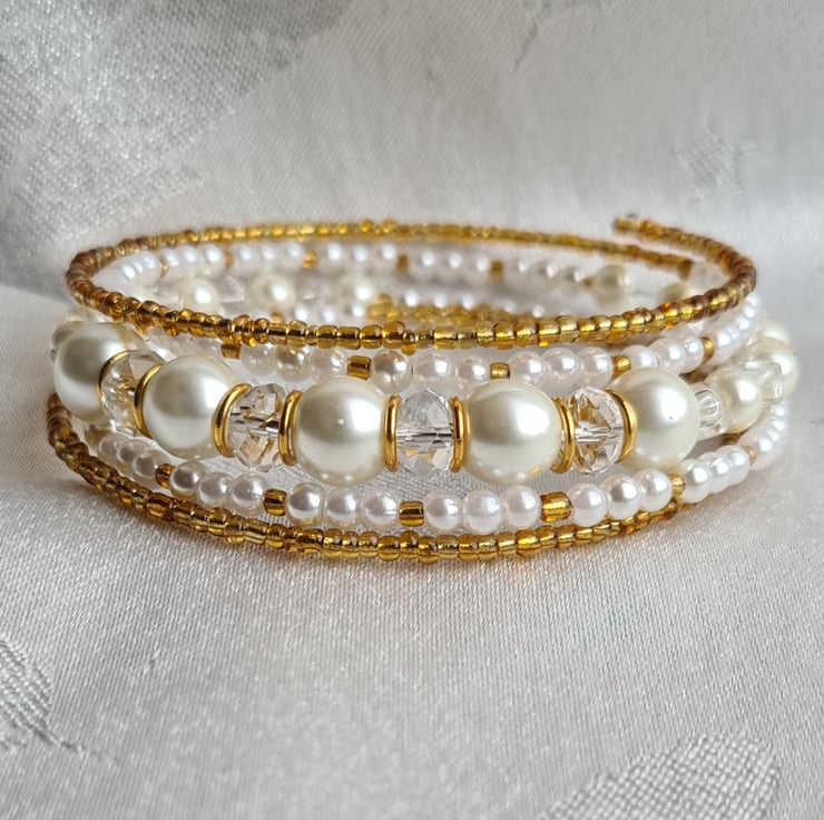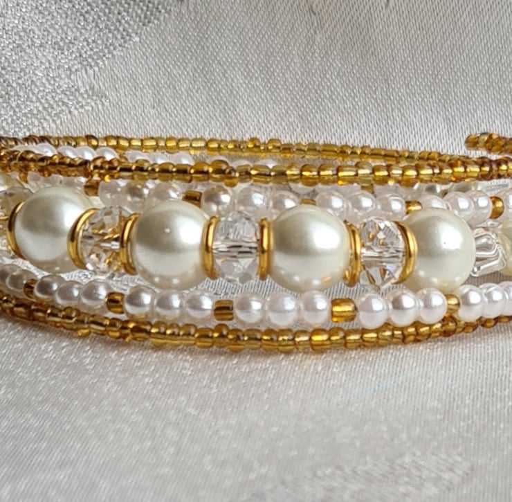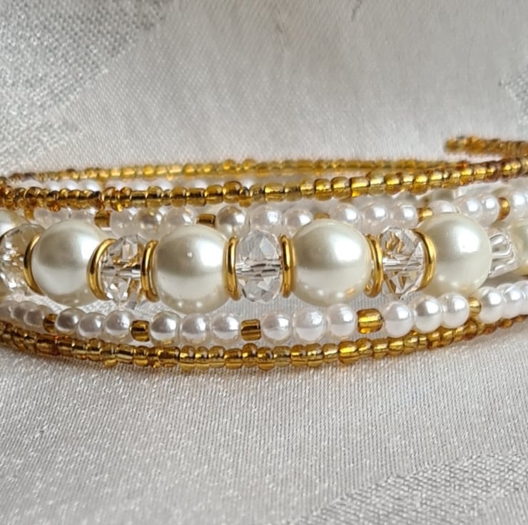 Gorgeous Light and Gold Tone Wrap Bracelet.