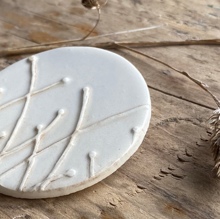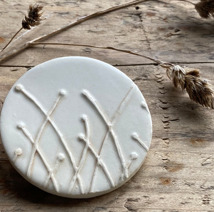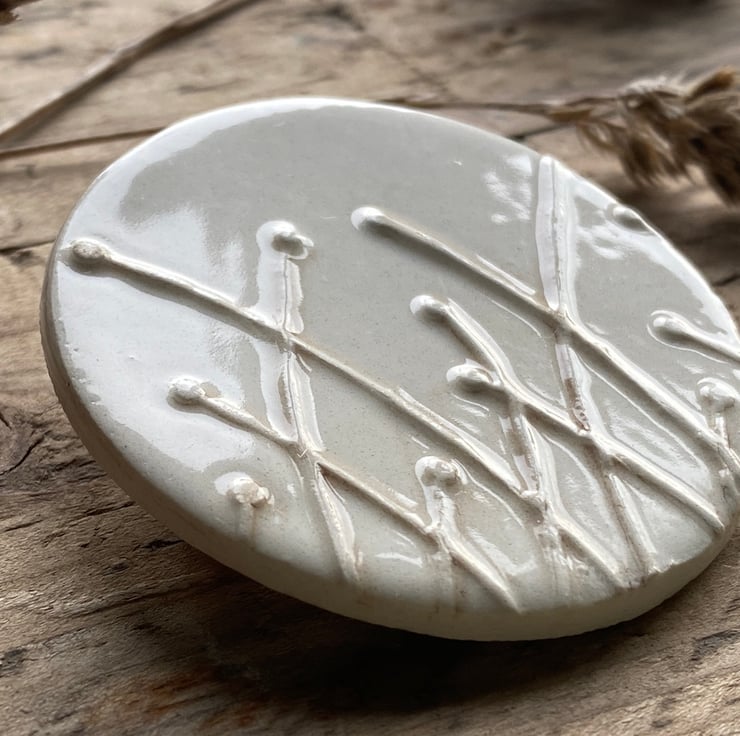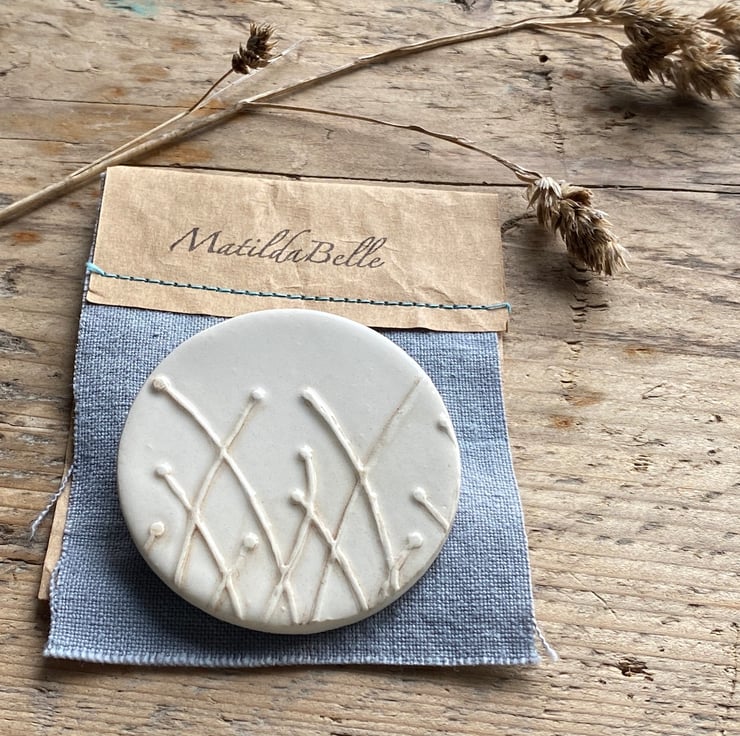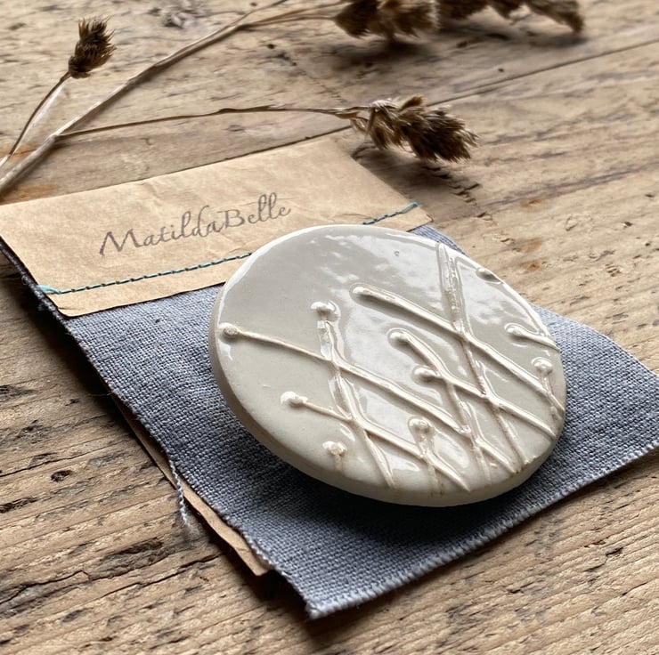 Naturalistic Brooch Inspired by the over wintering seed heads in the garden surrounding my home studio. This beautifully simple brooch as been imprinted with a carving of swaying seed heads.