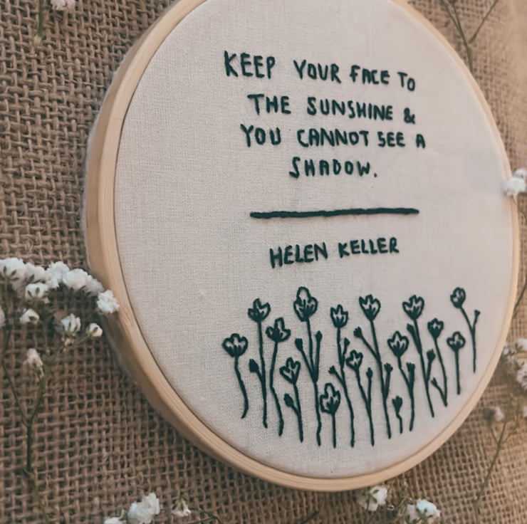 Delicately hand stitched positive quote with flowers in a minimalistic style