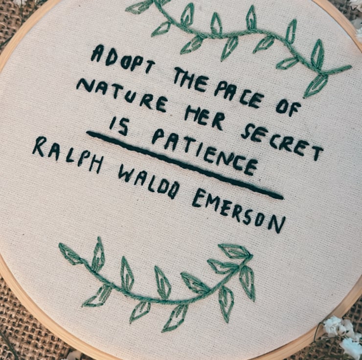 Delicately hand stitched positive quote with flowers in a minimalistic style