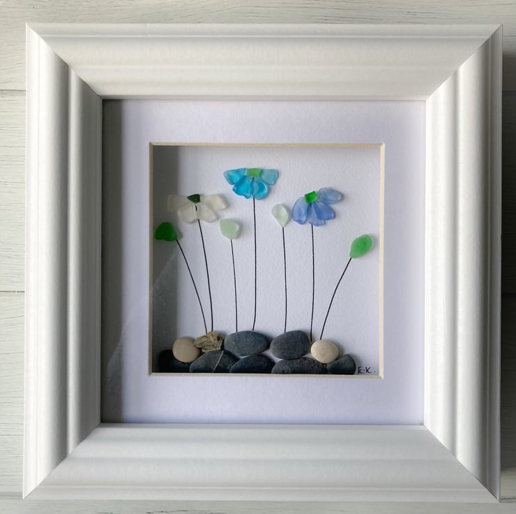 Floral sea glass and pebble art made in Cornwall