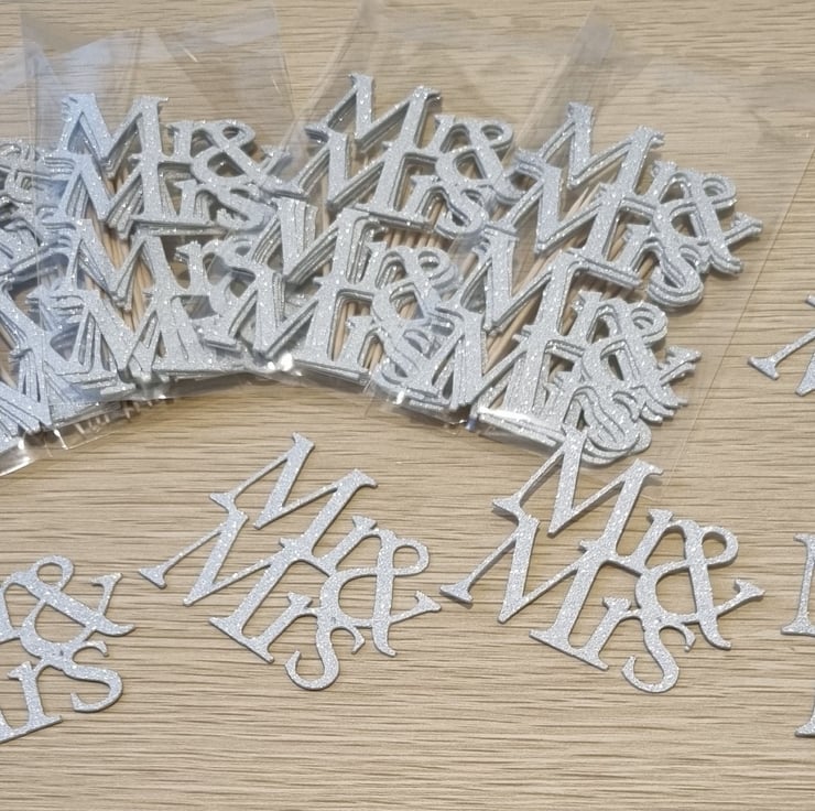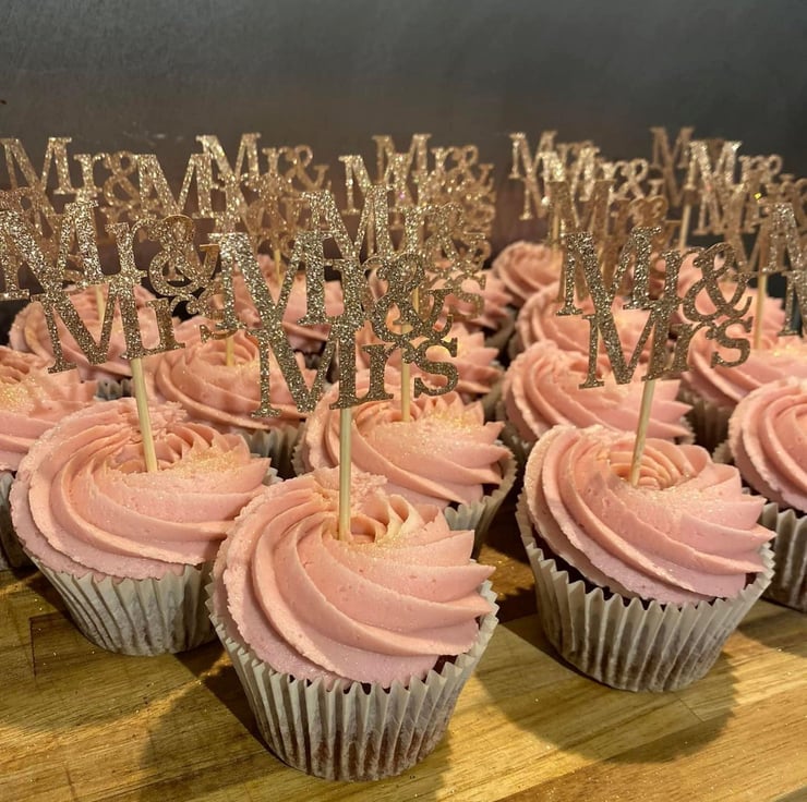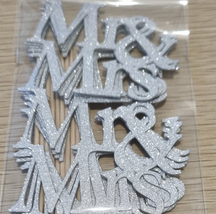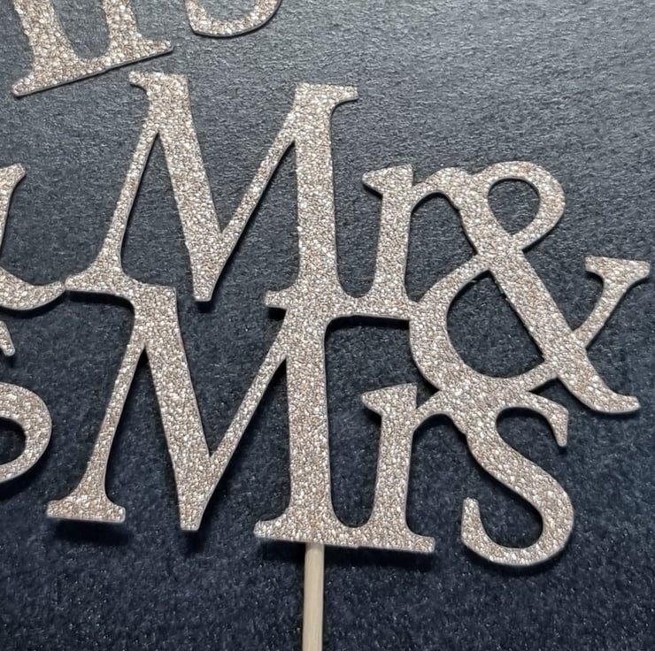 Double sided glitter Mr and Mrs cupcake toppers will add a sparkling finishing touch to any wedding cake cakes.