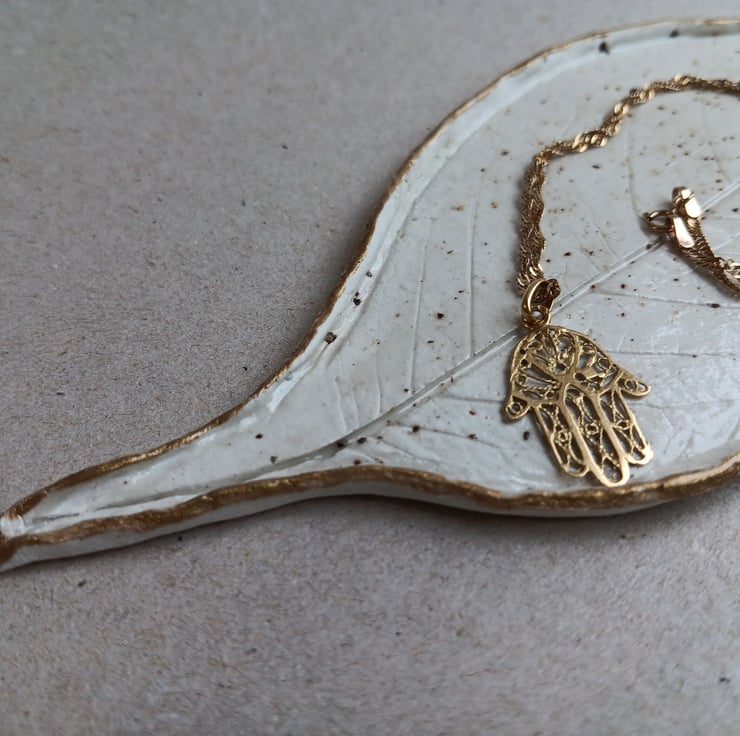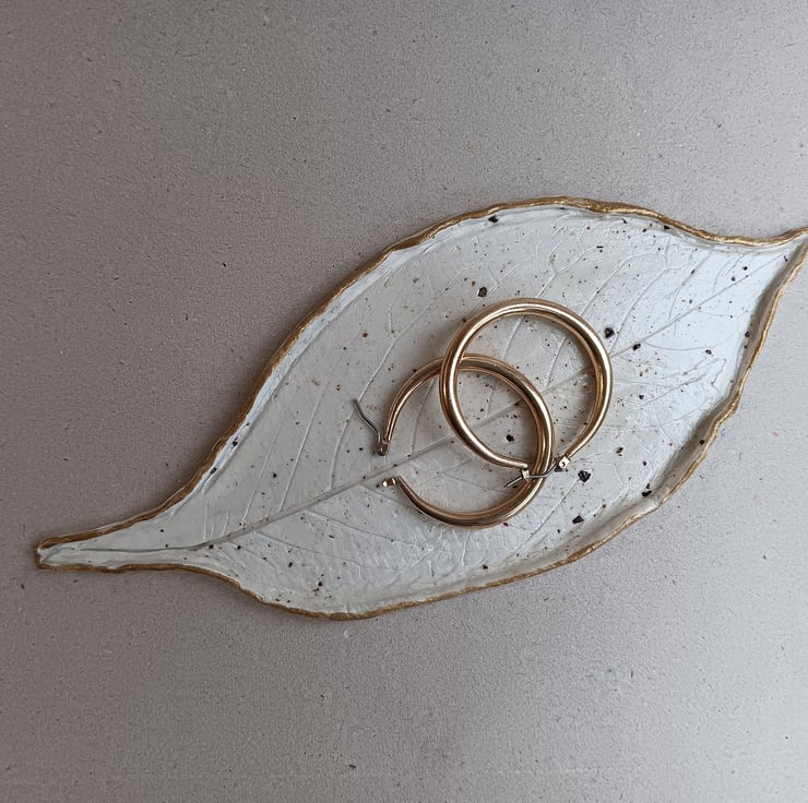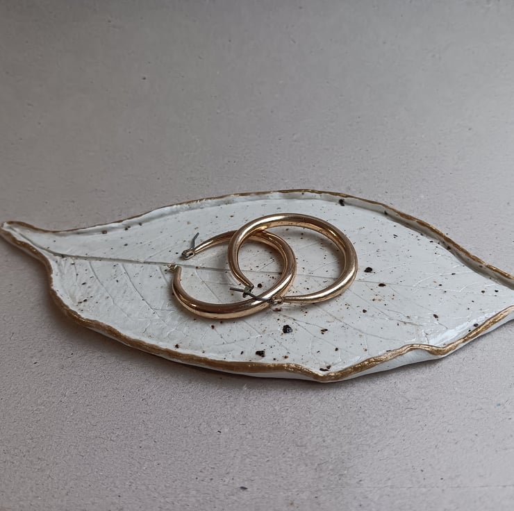 Leaf Shape Dish, Clay Catchall Dish - Trinket Dish - Jewellery Dish White Gold