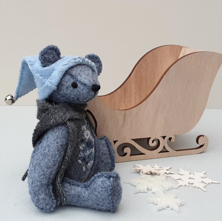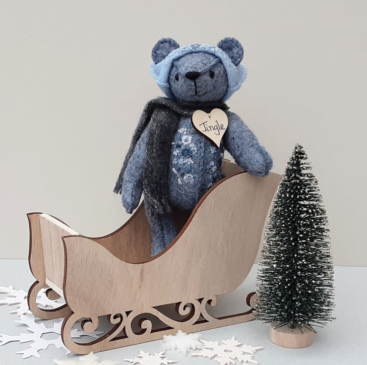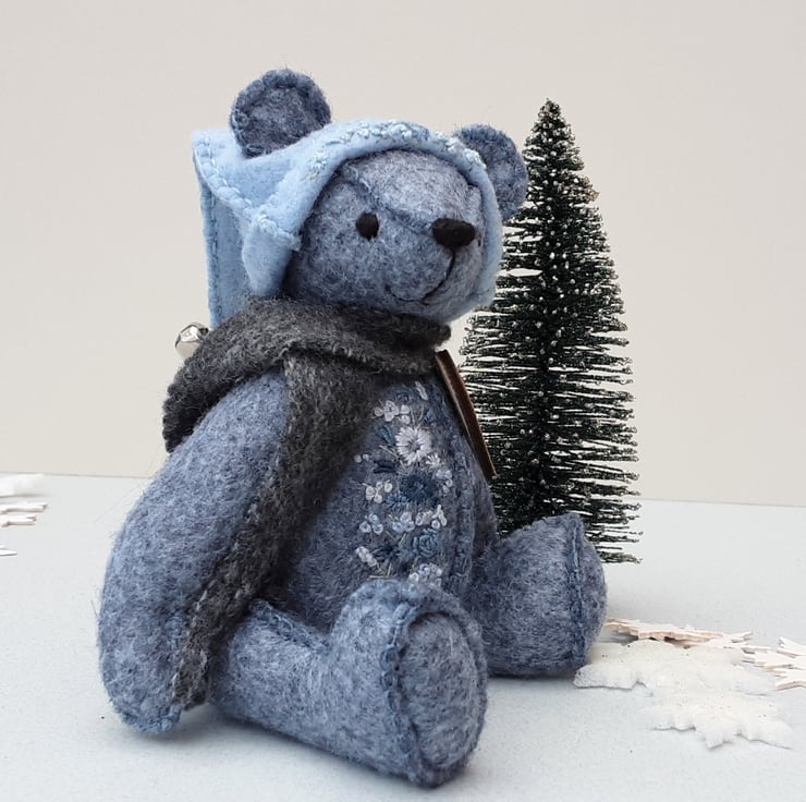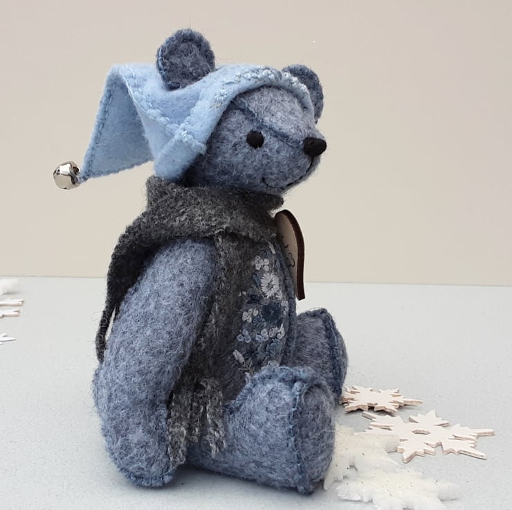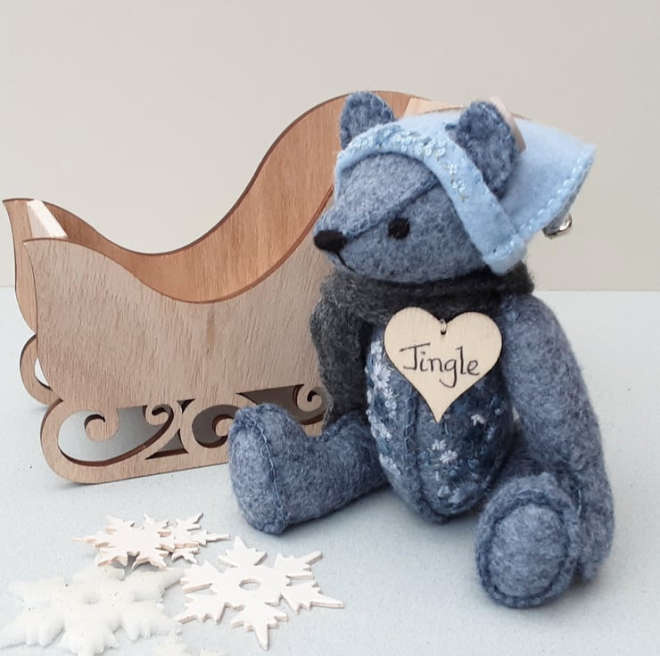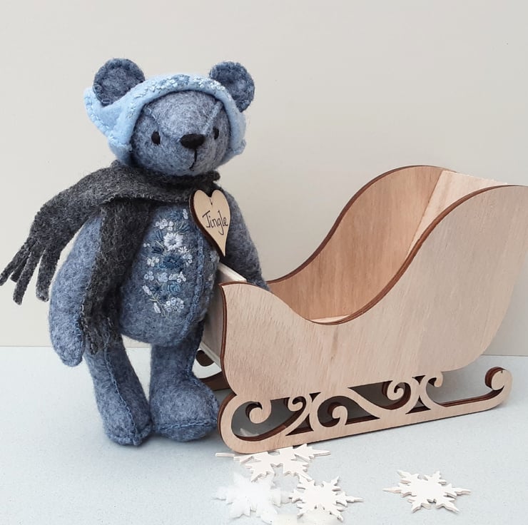 Meet Jingle a small 5.75" artist bear, a hand sewn and embroidered design from my new Signature range of adult collectable teddy bears. All of the bears from the new Signature range feature beautiful hand embroidered flowers to their body parts, each one is totally unique and the amount and placement of embroidery will differ from bear to bear. Made from quality wool felt they are all completely hand sewn, the seams are sewn three times to ensure stability and the seams are part of the feature and are worked on the right side of the fabric.