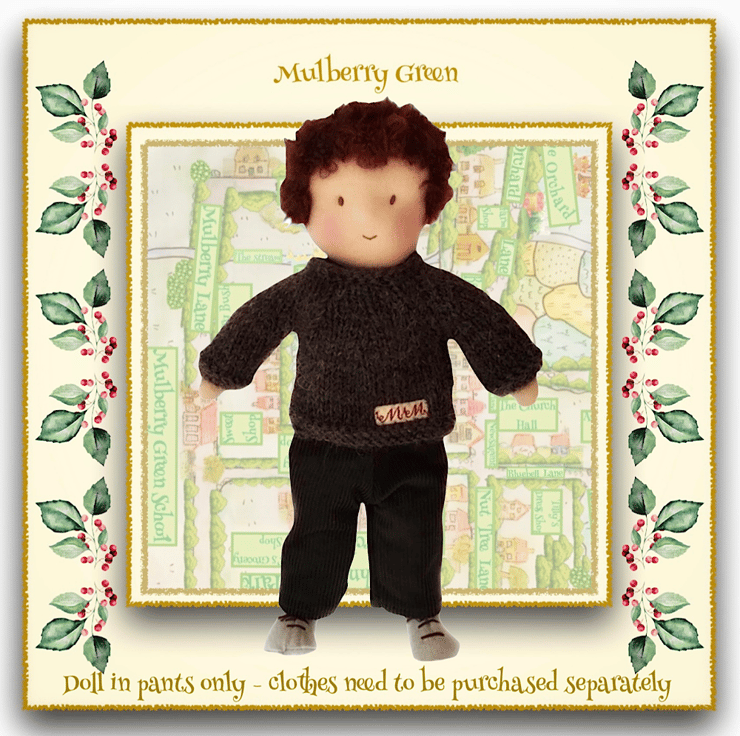 Mulberry Green is all about a time, now gone, but not so very long ago, when children had a great deal of freedom to explore their surroundings and use their imagination in play. A time when the world moved at a slower pace and things were made to last. To celebrate this heritage, wherever possible, I use traditional crafts and materials to create my dolls and outfits