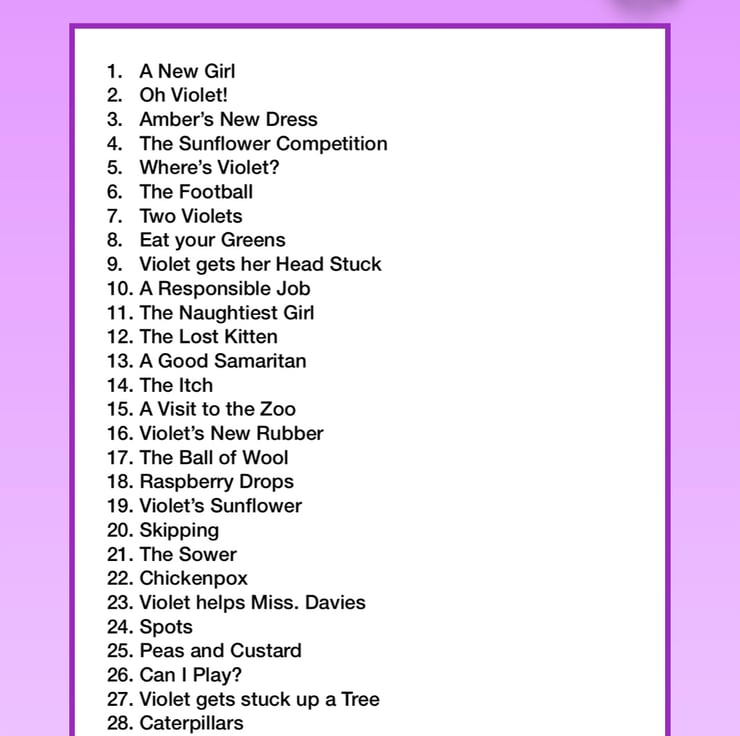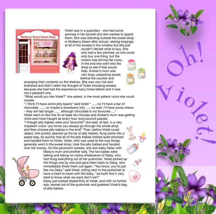 A full colour story book with 31 amusing stories about Violet and her antics. Violet is always up to some mischief or other and Miss. Davies and the other children from Mulberry Green Infants’ School are constantly amazed by all of the naughty things she does. Each story is just long enough for bedtime. Suitable for children 3-8 but enjoyed by anyone young at heart. Read about Violet, Maisy and Mo, Billy Spraggs and all of the other little characters in Miss. Davies’ class at Mulberry Green School.