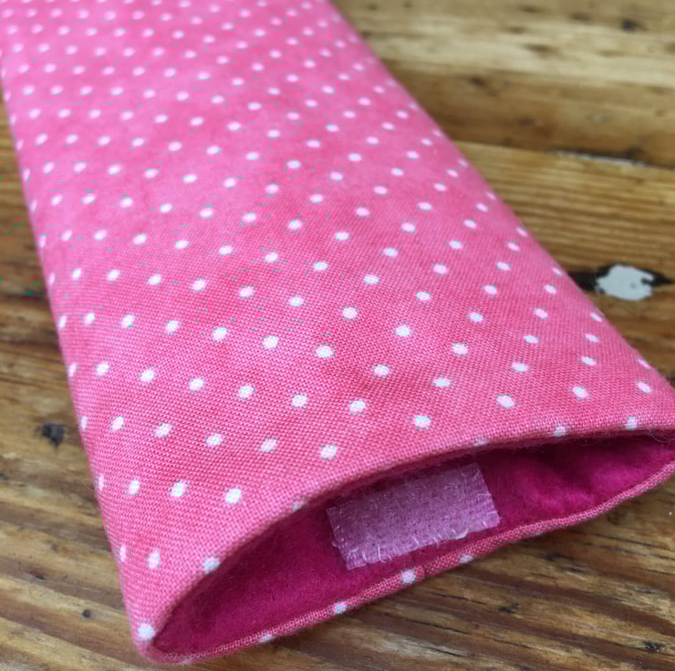 Glasses case - Pink and white spotty fabric case, pink polka dot glasses sleeve