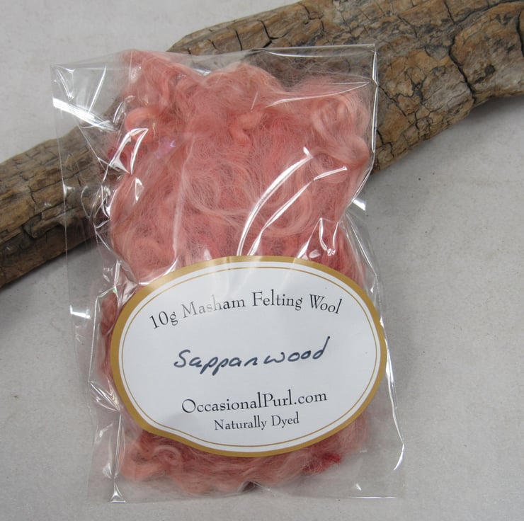 10g of loose Masham curly wool naturally dyed and ready for felting, spinning or weaving.