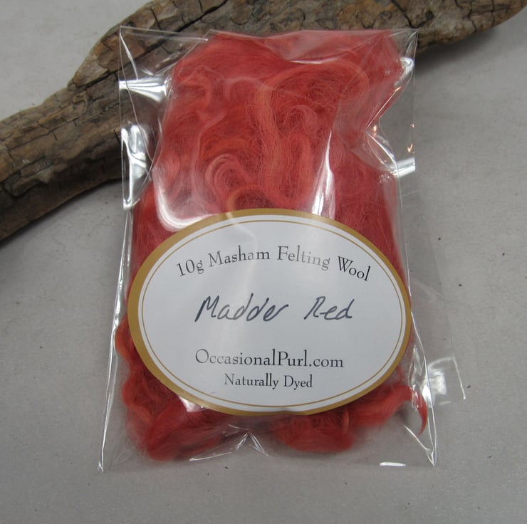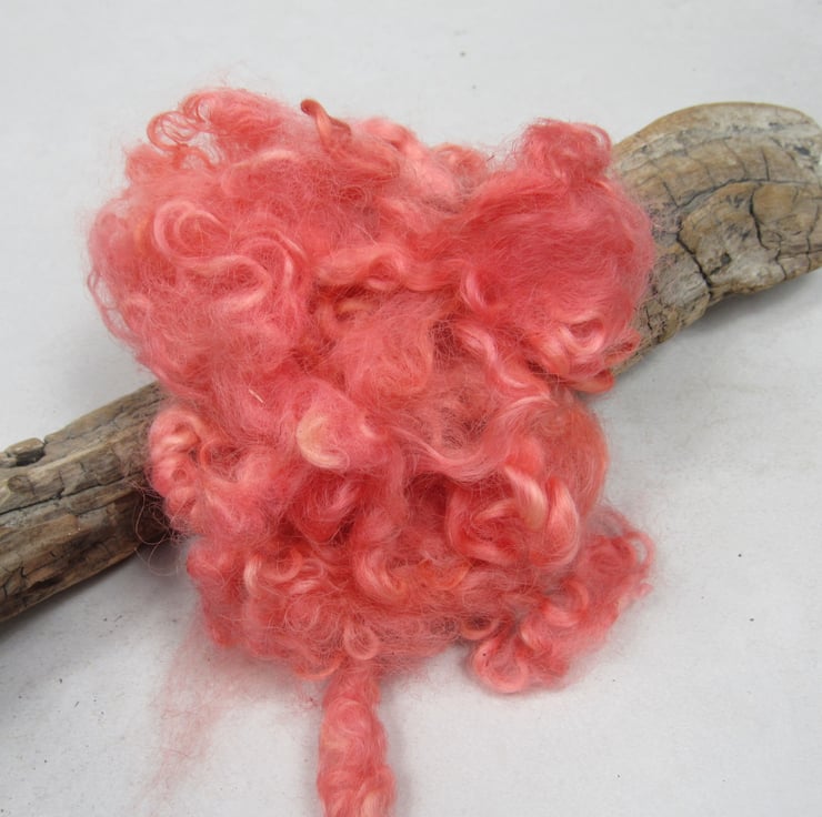 10g of loose Masham curly wool naturally dyed and ready for felting, spinning or weaving.